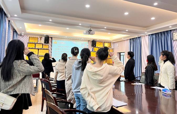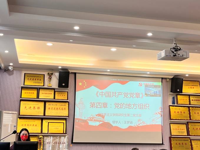 活动伊始,全体起立,奏唱国歌,重温入党誓词。王梦涵同志带领全体党员学习《中国共产党章程》第四章《党的地方组织》。她逐条为大家解读了第四章的相关内容,让支部党员对党的地方组织有了更加全面的认识和更加深刻的领悟。